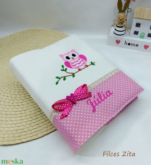 Baglyos névre szóló fotóalbum - textil fényképalbum babáknak