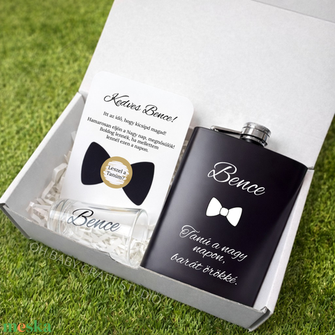 Tanú felkérő ajándék doboz – laposüveg, felespohár és kaparós kártya szett