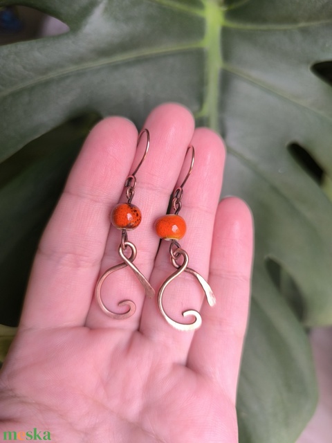 Vörösréz fülbevaló narancs kerámia gyönggyel