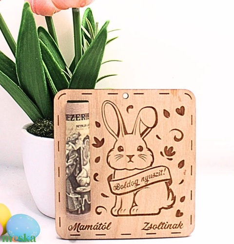 Névre szóló húsvéti ajándék – egyedi nyuszi pénztartó gravírozva