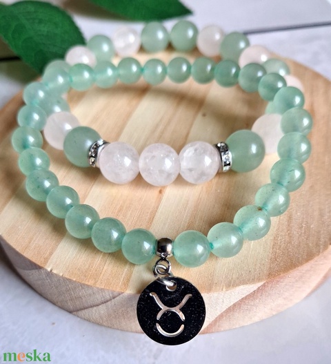 Bika ásvány karkötő szett- zöld aventurin és rózsakvarc - csillagjegyes ékszer