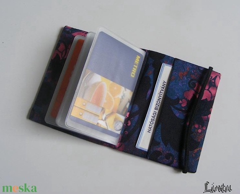 Lila virágok, vízhatlan anyagból készült igazolványtartó és/vagy kártyatartó
