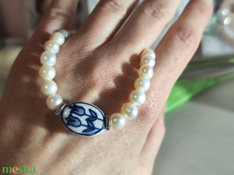 Tavaszi szellő – AA minőségű valódi gyöngy karkötő kézzel festett tulipánnal!