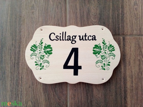 Házszám, házszámtábla, utcatábla- zöld népi mintás , házszám .