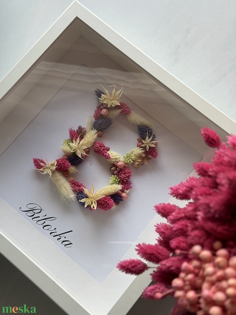 Egyedi szárított virágos betű képkeret névvel – személyre szabott ajándék