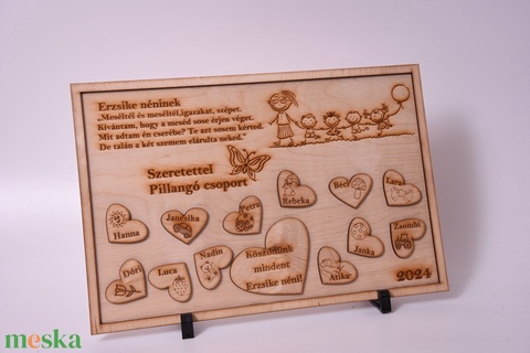 otthon & életmód, dekoráció, fali és függő dekoráció, falra akasztható dekor, ballagás, ajándék, ovis, óvoda, tabló, gravírozás, fa, egyedi, köszönet, csoportkép, óvónő, tanár