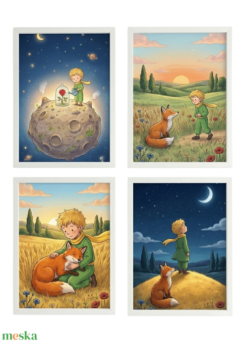 A kis herceg – 4 darabos falikép sorozat, mesés illusztráció
