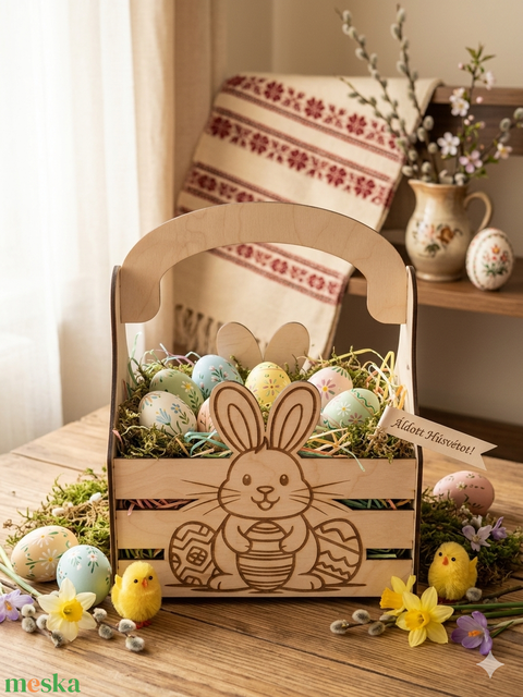 Nyuszis Húsvéti Tojásgyűjtő Kosárka – Egyedi Névvel is Kérhető!