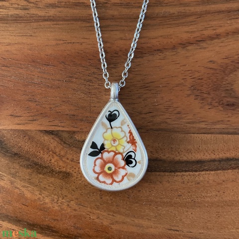 Mentett angol porcelán darabok - virágos nyaklánc - csepp medál nemesacél lánccal, III