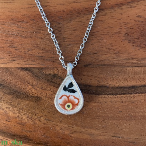 Angol mentett porcelán darabok - pici csepp virágos nyaklánc - nemesacél lánccal