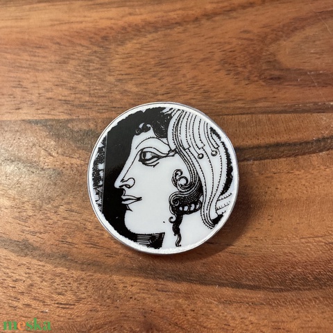 Bross - mentett NŐI ARC porcelán darab - nemesacél bross, kitűző