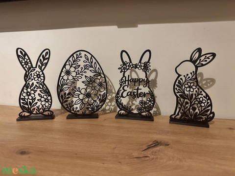 Mindegyik fekete színben, erős kis talppal – amikor fény éri, csodás árnyékokat vet a falra vagy asztalra. Tökéletes polcra, ablakpárkányra, húsvéti terítékre vagy locsolóajándékba! Anyag: PLA.