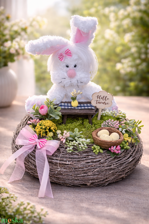 ünnepi díszek, dekorációk, húsvéti díszek és dekorációk, húsvéti asztaldíszek, húsvét, dekoráció, asztaldísz, nyuszi, tavasz, virág, lakásdekor, ajándék, gally, koszorú, fészek, tojás, kézműves, handmade, dísz, ünnep, otthon, dekor