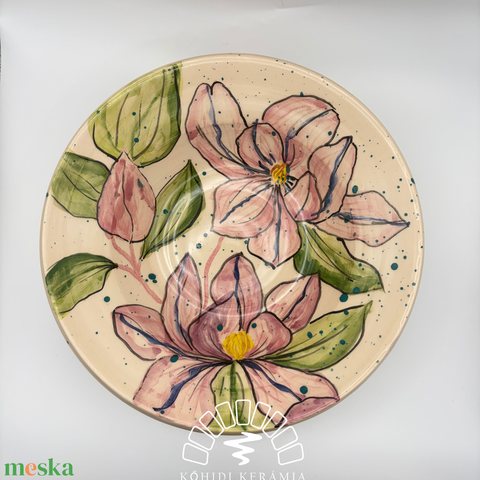 Kerámia tányér – tavi rózsás festett mintával