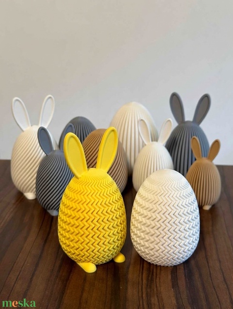 Ezek a 3D nyomtatott kis figurák finom chevron/zigzag mintával és kis lábakkal készülnek – igazi tavaszi hangulatfokozók polcra, asztalra, húsvéti kosárba vagy locsoló meglepiként. A mintázat miatt gyönyörűen játssza a fényt!