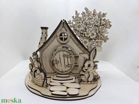 Mécsestartó nyusziház fából. Méretei: 23x21x25 cm