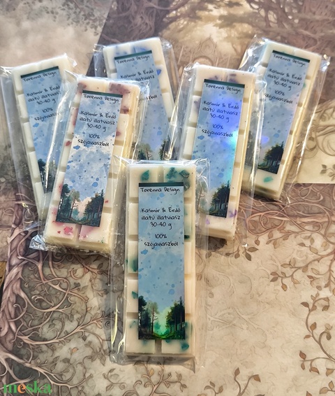 Kasmír erdő illatú illatviasz. 100 % szójaviaszból készült, minőségi illatolajjal, 30-40 gramm.