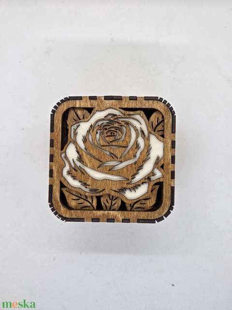Rózsa mintás díszdoboz/ékszeres doboz. 100x100x80 mm