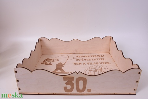 Egyedi, gravírozott sörös tálca, amely kifejezetten 30 db dobozos sör tárolására készült. Praktikus kialakítása mellett látványos és személyes ajándék, amely garantáltan mosolyt csal az ünnepelt arcára.