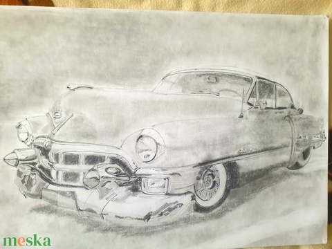 1953-as Cadillac Series 62 Coupe valósághű ceruza rajz.100%-ban kézzel készült egy internetfotó alapján.Az eredeti kép 60%-os nagyítása.Kizárólag grafitceruzát használtam az elkészítéséhez.6H,4H,2H,2B,6B ceruzákat.Valamint a dúrva vázlatot rotring ceruzával rajzoltam meg.A kész kép kapott egy vékony réteg lakkot.A kép A3-as,42X30cm méretű.
