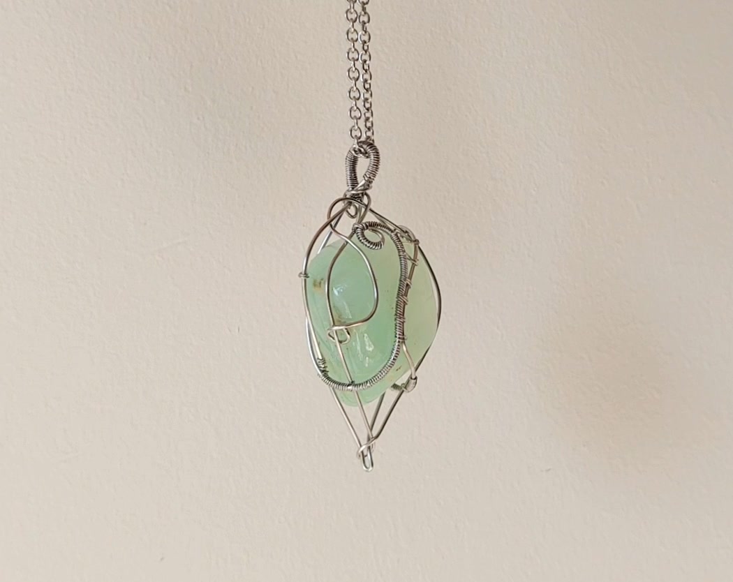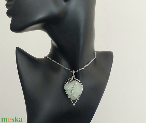Acél nyaklánc prehnit ásvány kővel