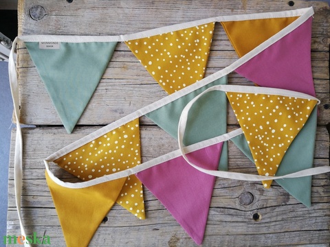 Zászlófüzér, Textil Girland Dekoráció, Babaszoba Dekor, Háromszög Zászló