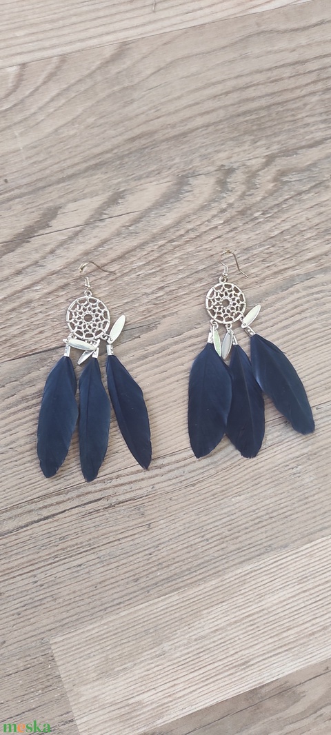 Álomfogó stílusú tollas fülbevaló – sötétkék, bohém