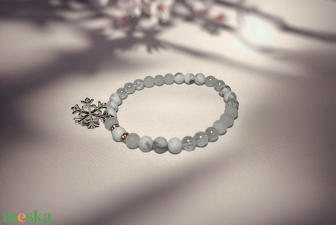 Theta ásványkarkötő - béke - Howlit, fehér jáde, hegyikristály