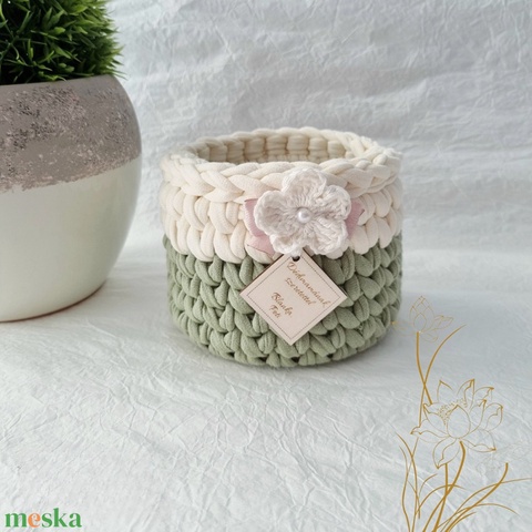 Horgolt tárolókosár egyedi felirattal. Ajándék anyák napjára