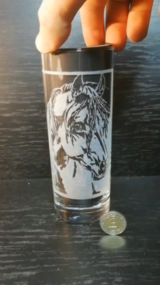 Ló mintás üveg pohár kézzel gravírozva