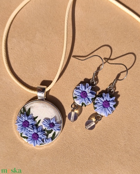 Búzavirágos ékszerek, fülbevaló és nyaklánc