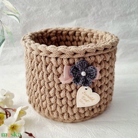 Horgolt tárolókosár egyedi felirattal. Ajándék anyák napjára