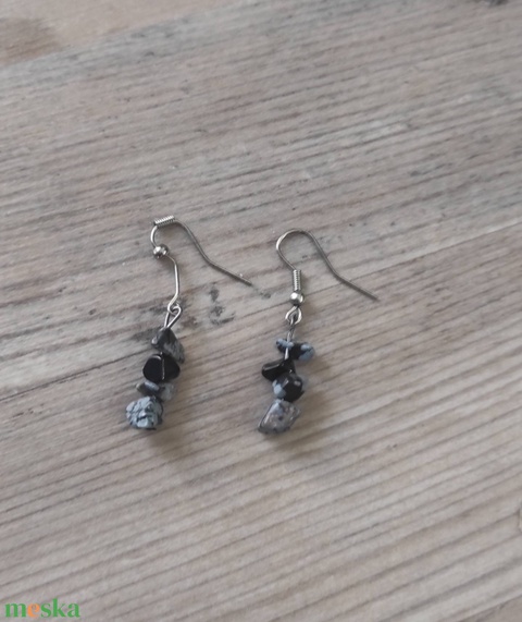 Fülbevaló - Apró ásvány köves, fekete–szürke árnyalatokban, minimál stílus
