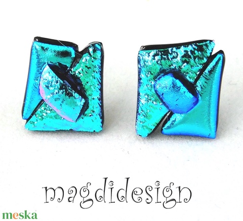 NEMESACÉL! Türkiz-kék borzaska dichroic üvegékszer stiftes fülbevaló