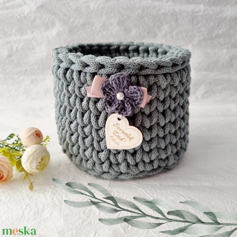 Horgolt tárolókosár egyedi felirattal. Ajándék anyák napjára