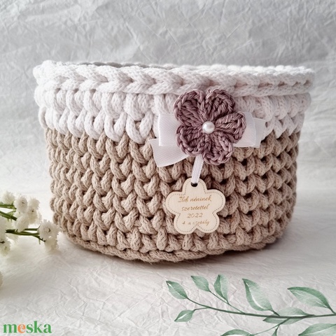 Horgolt tárolókosár egyedi felirattal. Ajándék anyák napjára