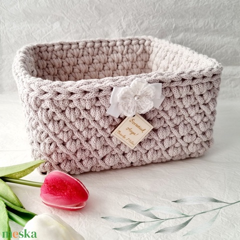Horgolt tárolókosár egyedi felirattal. Ajándék anyák napjára