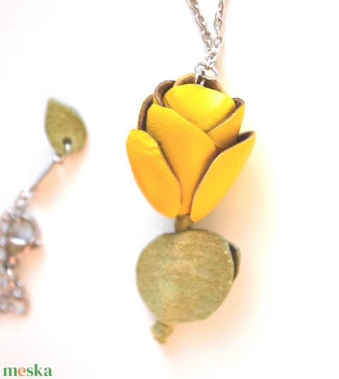 Sárga tulipán-extra nyaklánc valódi bőrrel