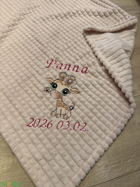Egyrétegű babatakaró -zsiràf-lány mintával, névre szóló