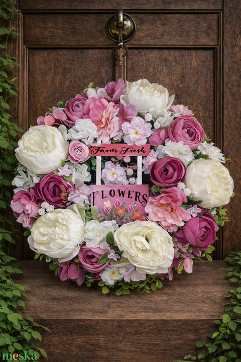 Tavaszi ajtódísz 38 cm-es extradús rózsaszín álom