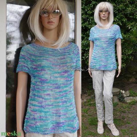 TUSSAH LUX - egyedi festésű kézzel kötött 100% vadselyem pulóver / türkiz,lila
