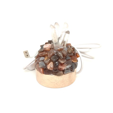 Holdkő hegyikristály félgömb ásvány hangulatlámpa fa talppal 6 cm