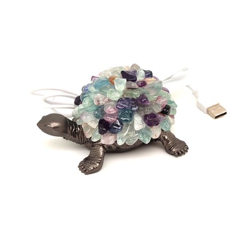 Fluorit teknős hangulatlámpa fekete 10×8 cm USB LED talppal