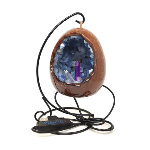 Kék kalcit nyers tojás hangulatlámpa fém állvánnyal 10 cm