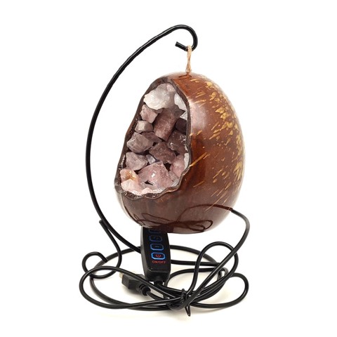 Rózsakvarc nyers tojás hangulatlámpa fém állvánnyal 10 cm