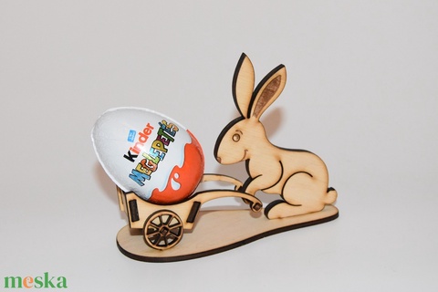 Húsvéti nyuszi fából, talicskával. A talicskába húsvéti tojást vagy édességeket lehet tenni.