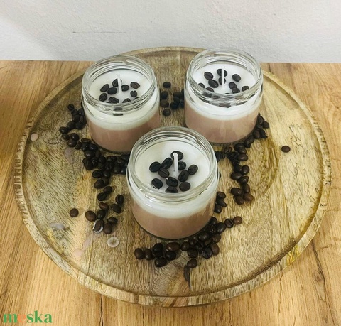 - Anyag/Összetevő szójagyertya, kávé illóolaj, vanília illóolaj