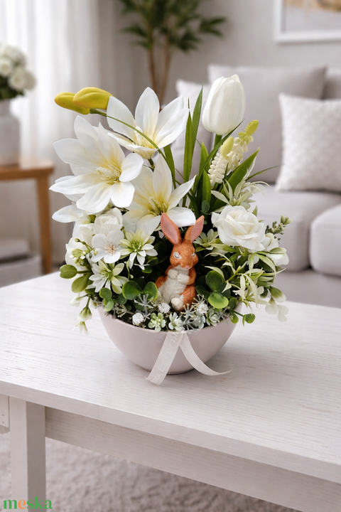 Magnóliás alvó nyuszis asztaldísz