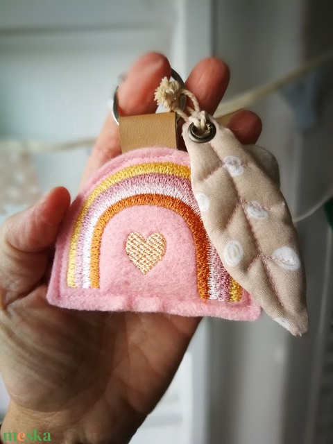 Hímzett szivárvány gyapjúfilc dekorációs kiegészítő, kulcstartó