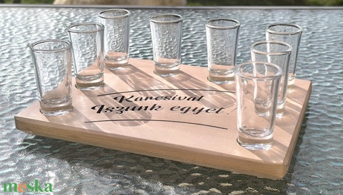 otthon & életmód, konyhafelszerelés, tálalás, tálalás, pálinkás poharak, szettek, bükkfa, kézműves, tálaló, palinkás, pohár, kínáló, egyedi, ajándék, esküvő, tartó, gravírozott